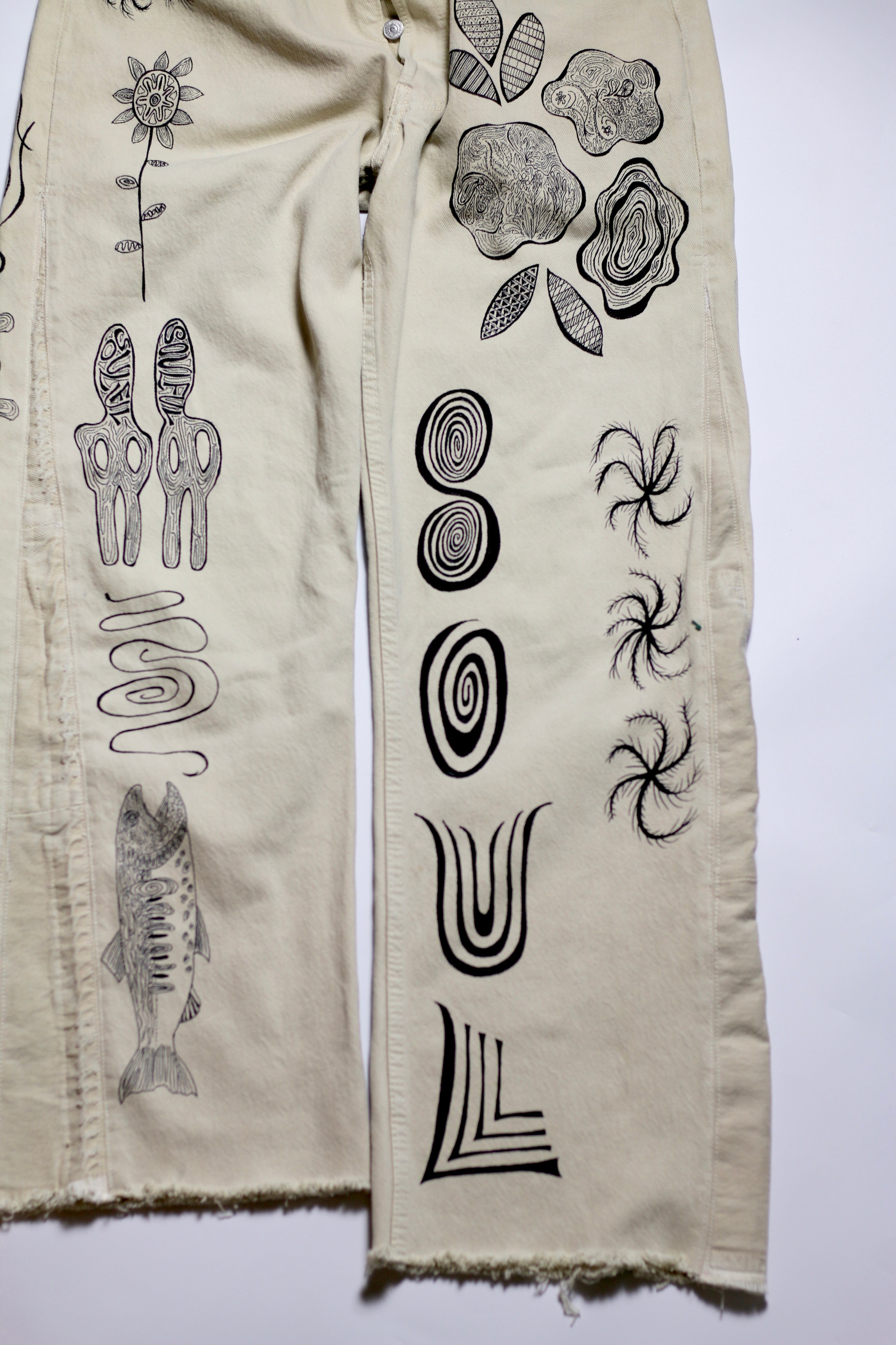 Vinylからのインスピレーションを落とし込んだハンドペイントパンツです。