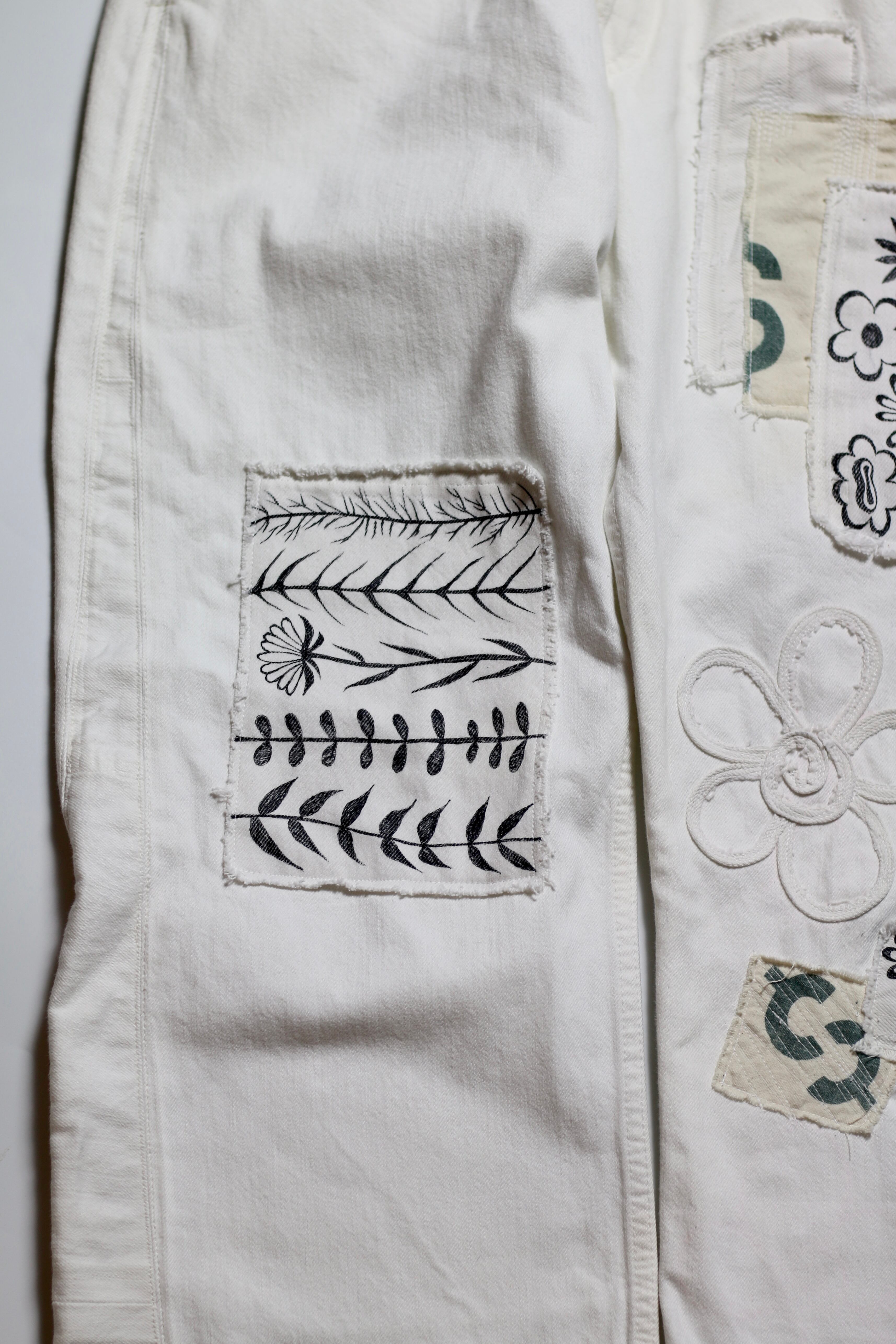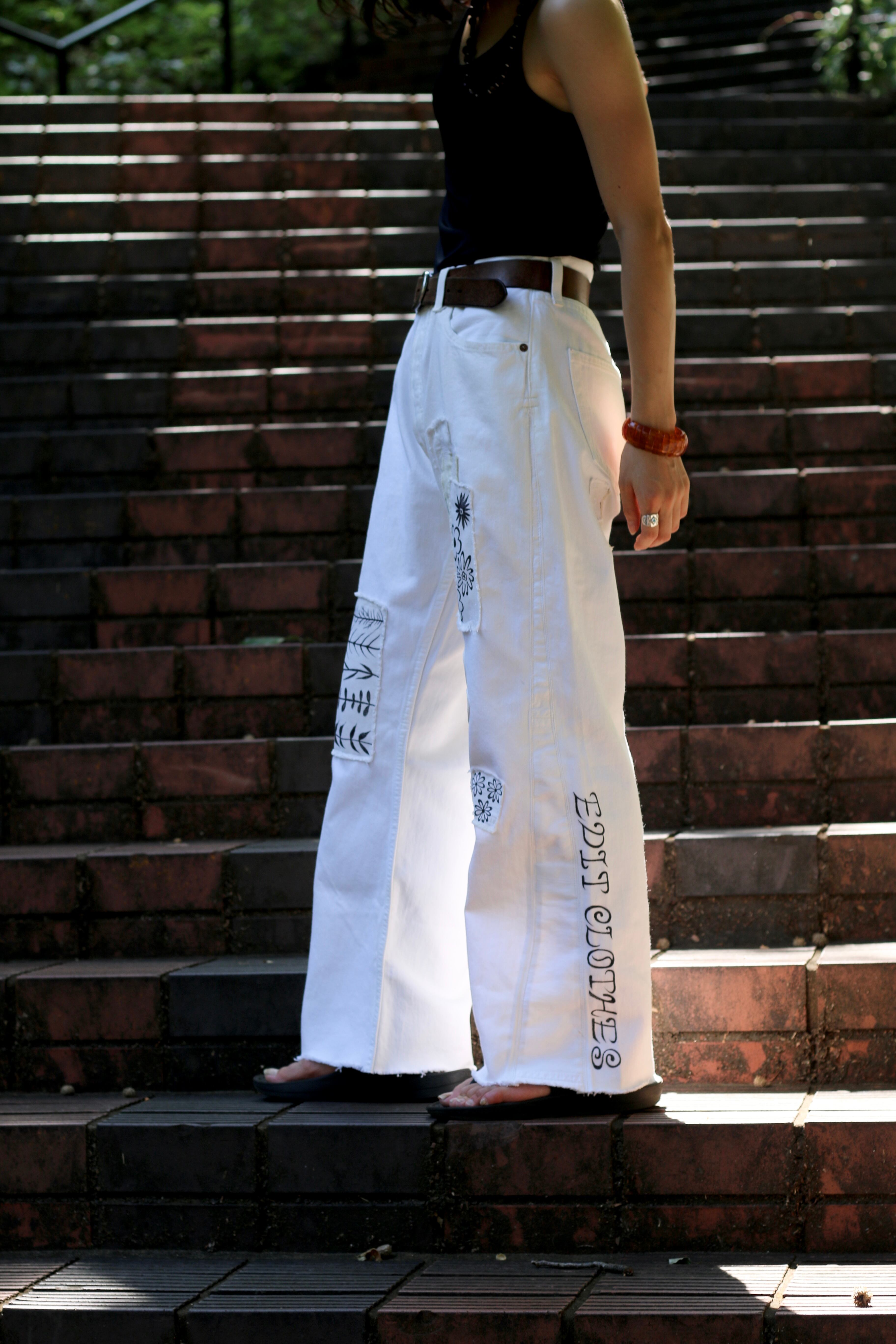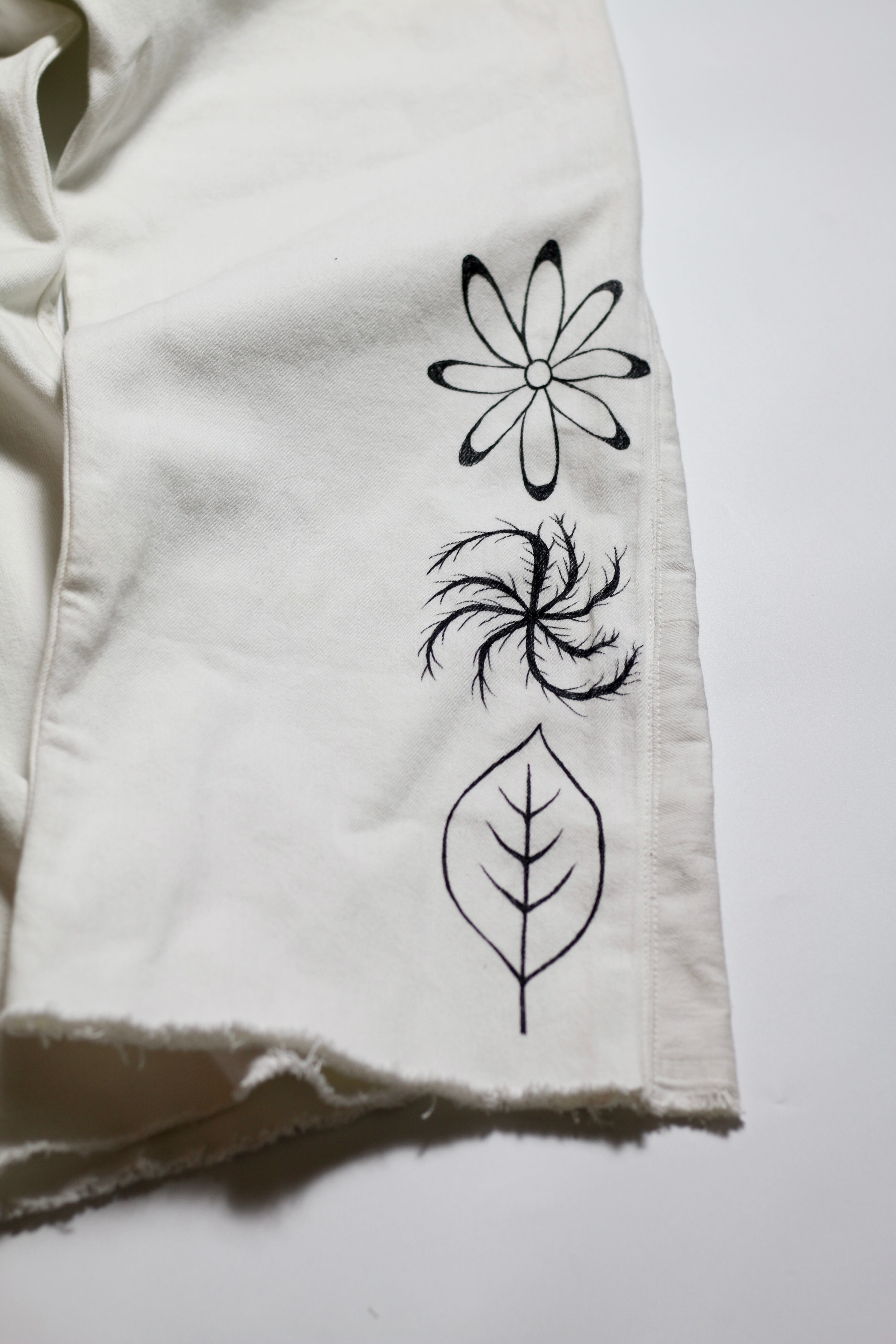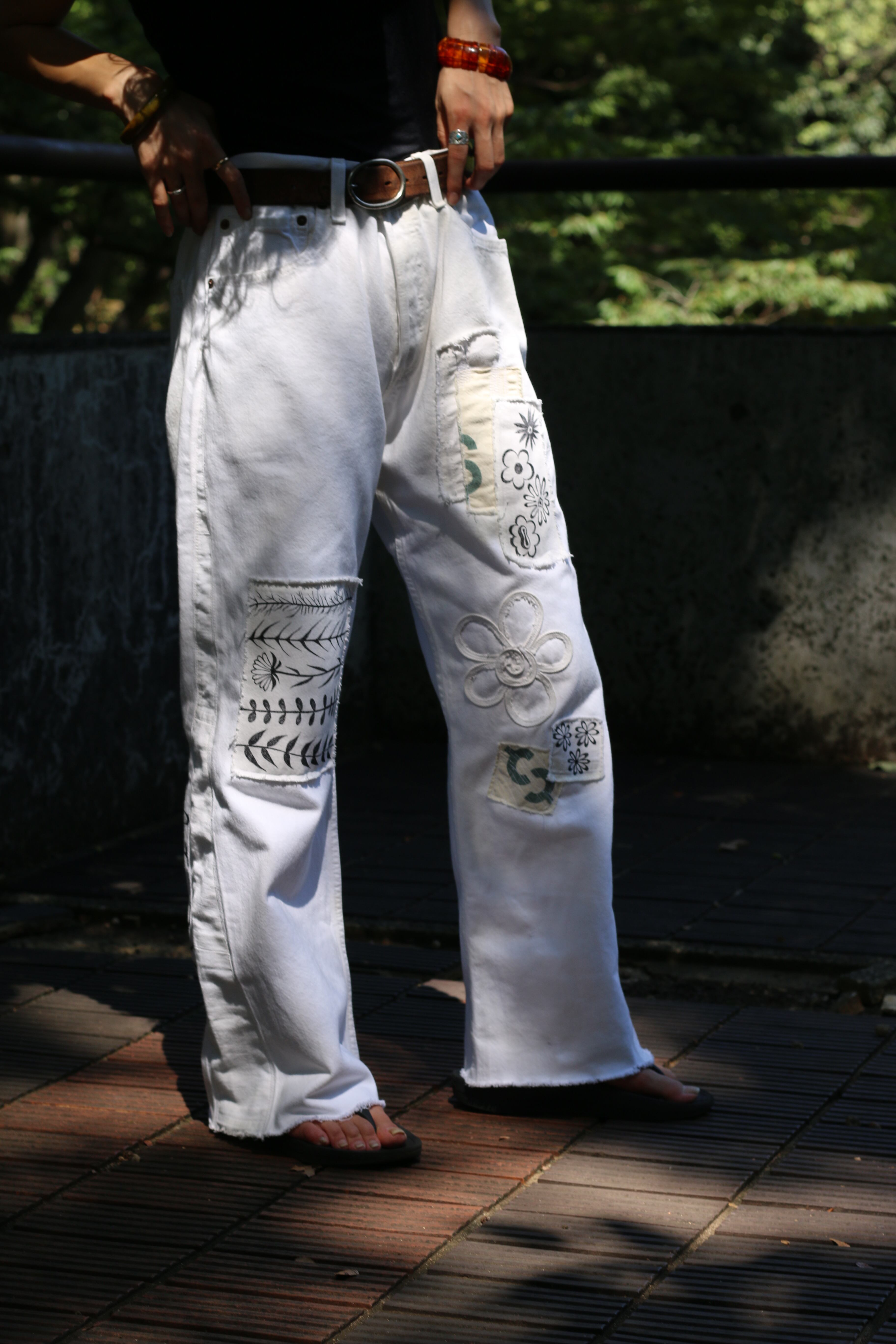 Levi's 501 ホワイトデニムをカットオフ、フリンジ加工、