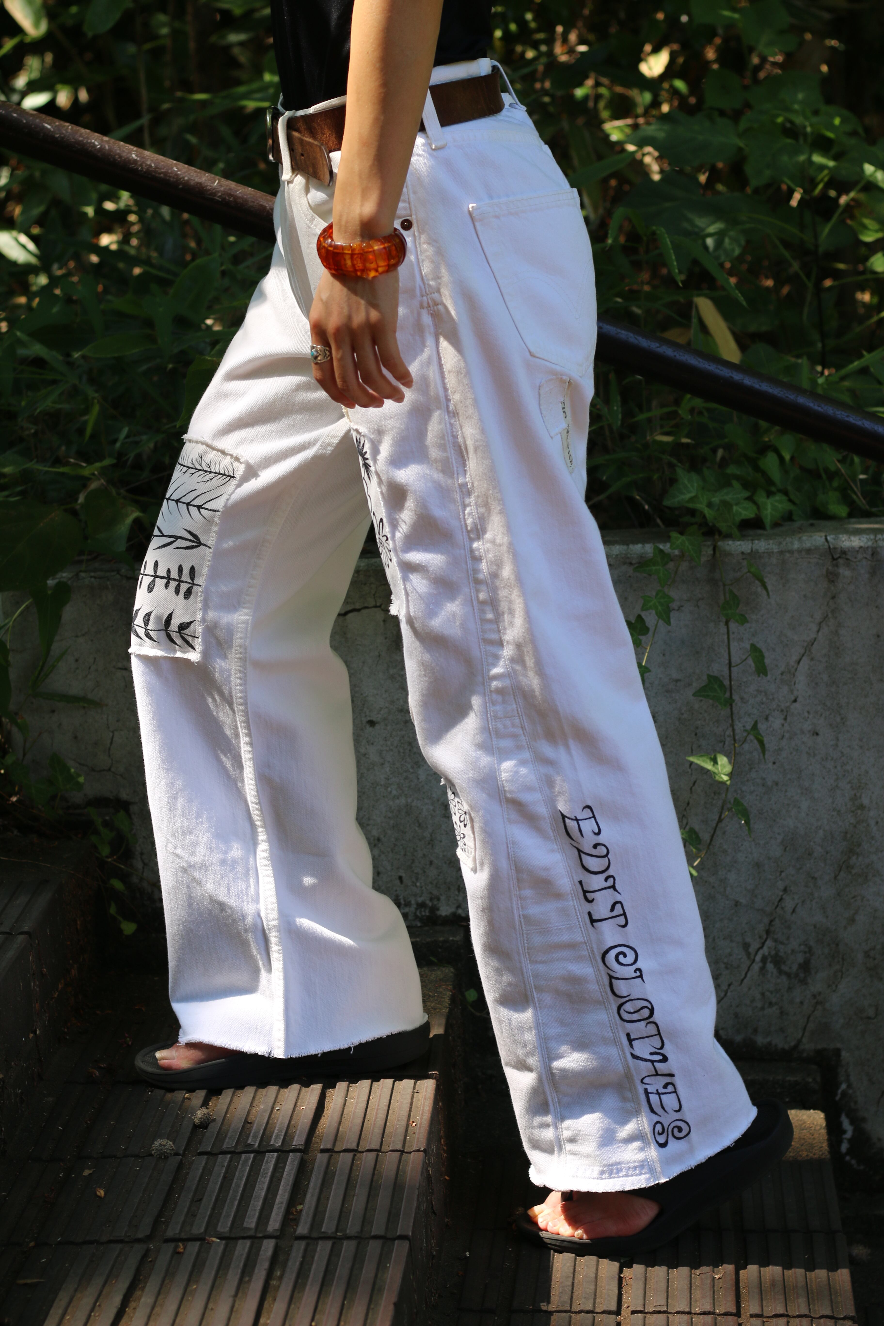 ワタリから裾にかけて幅を広める事でバランスのとれたシルエットに加工しております。
