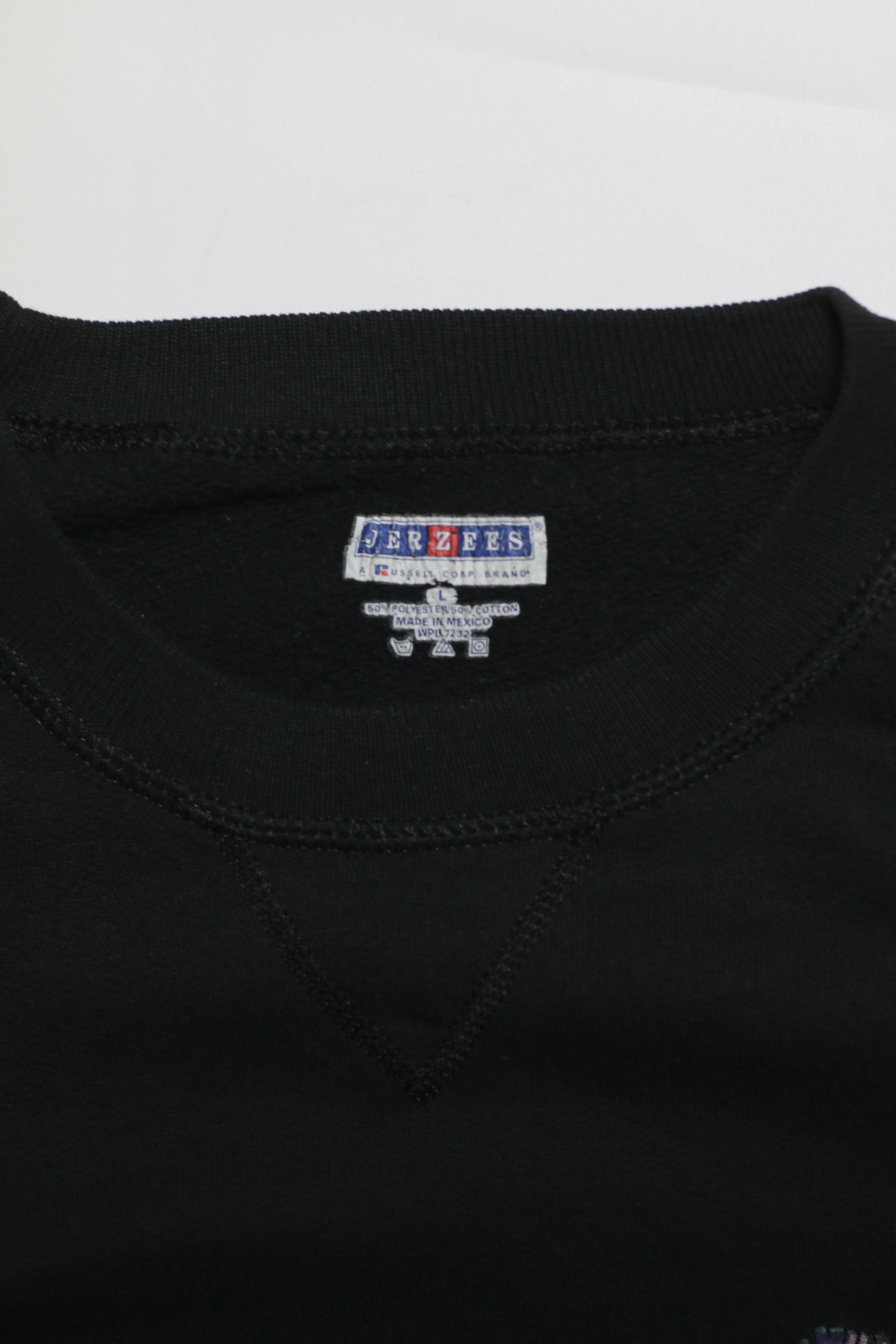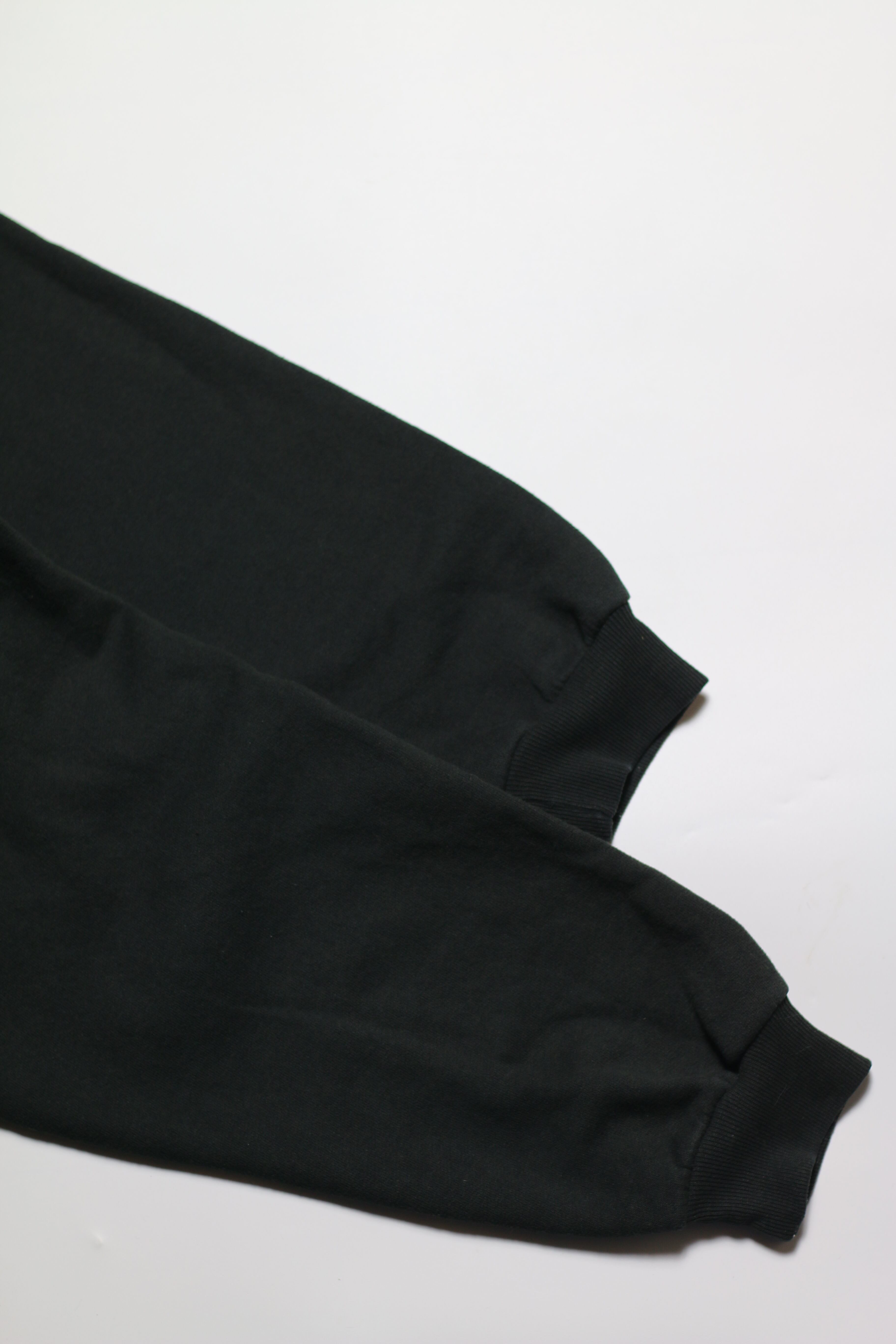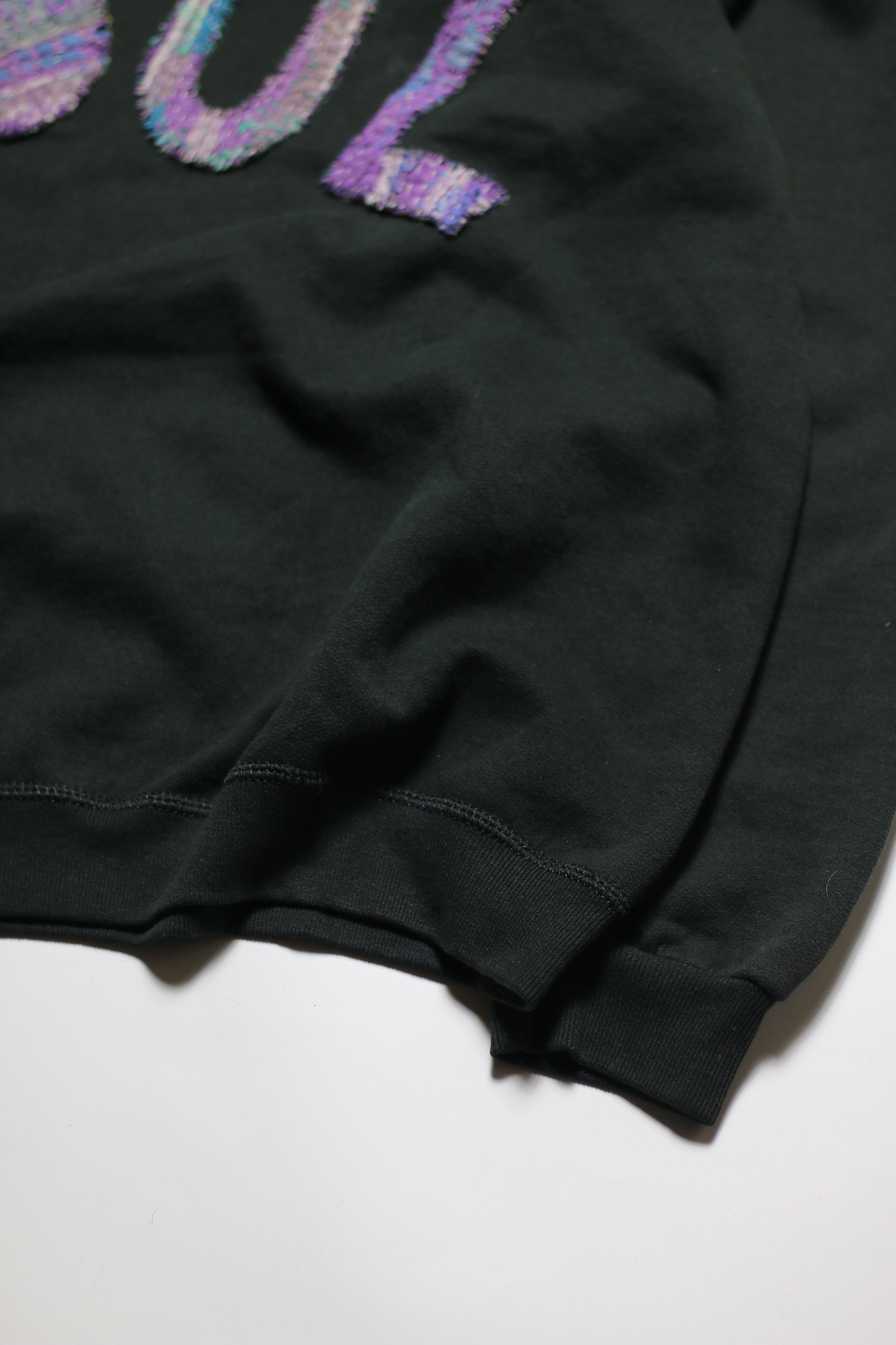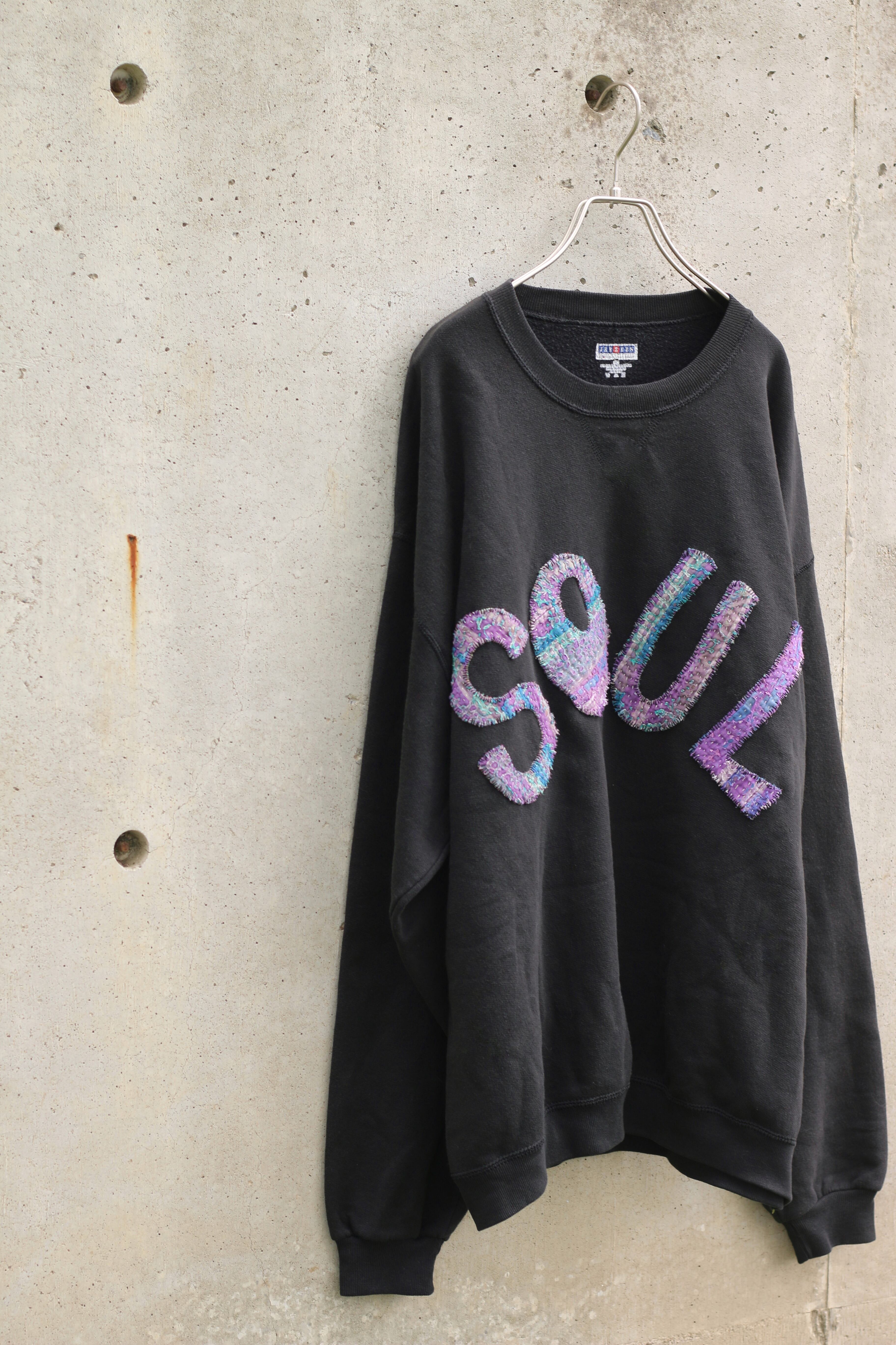 インド綿の端切れを捨てずにツギハギして作られた伝統的な刺し子刺繍生地カンタキルトをブラックの古スウェットに手縫いで縫い付けた一点モノです。