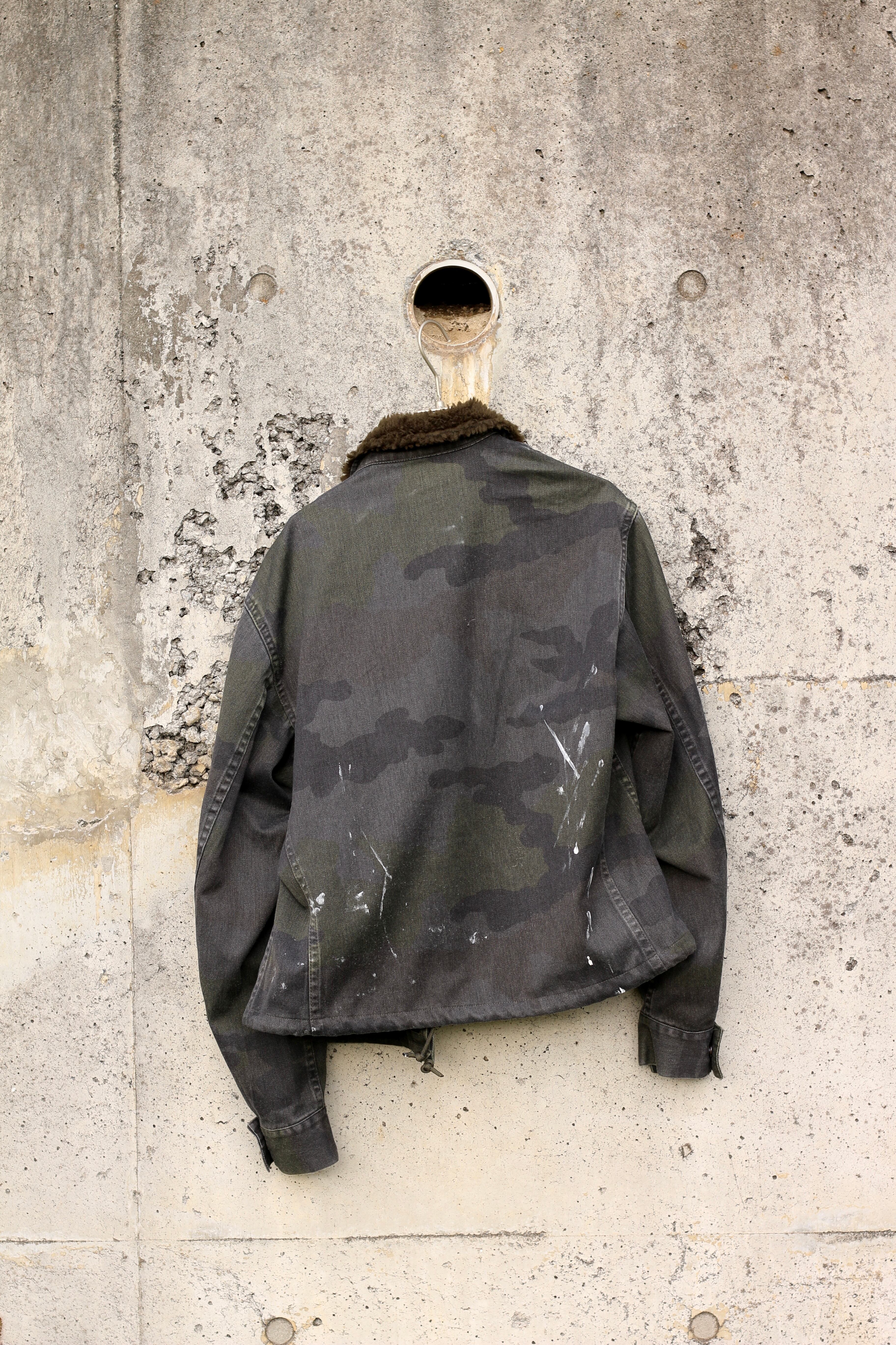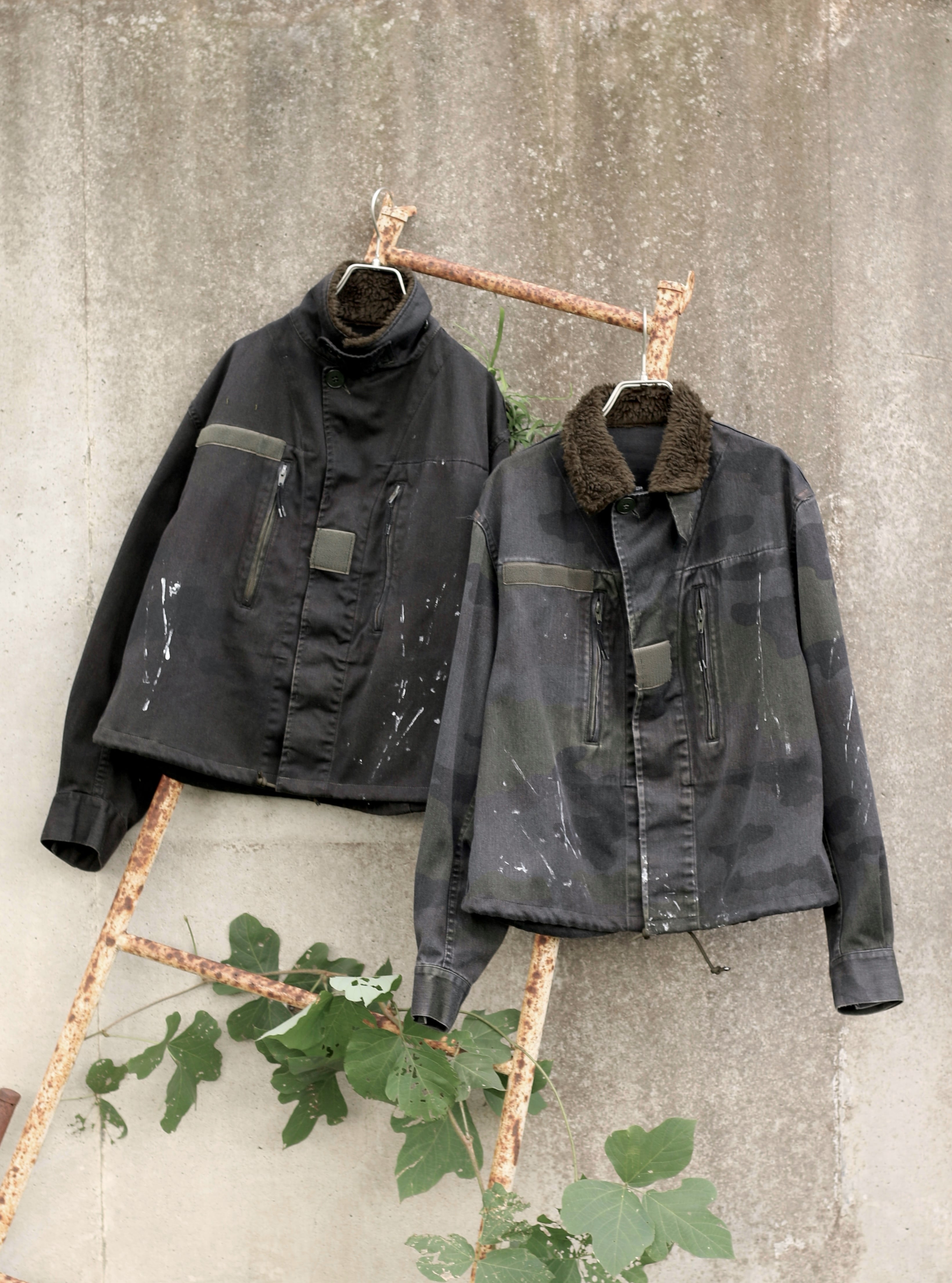 フランス軍 F2カモ柄コンバットジャケットを後染めブラックに。