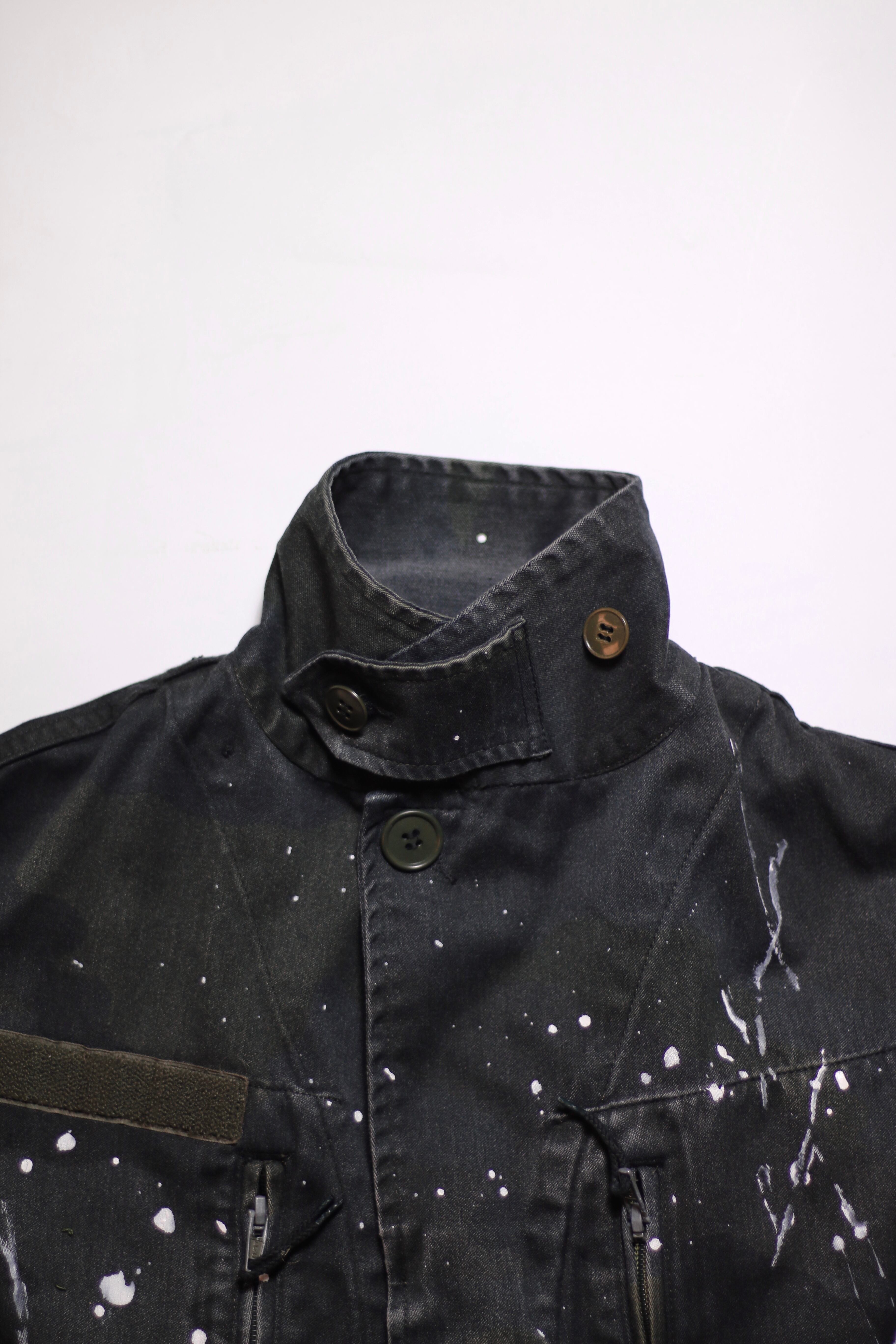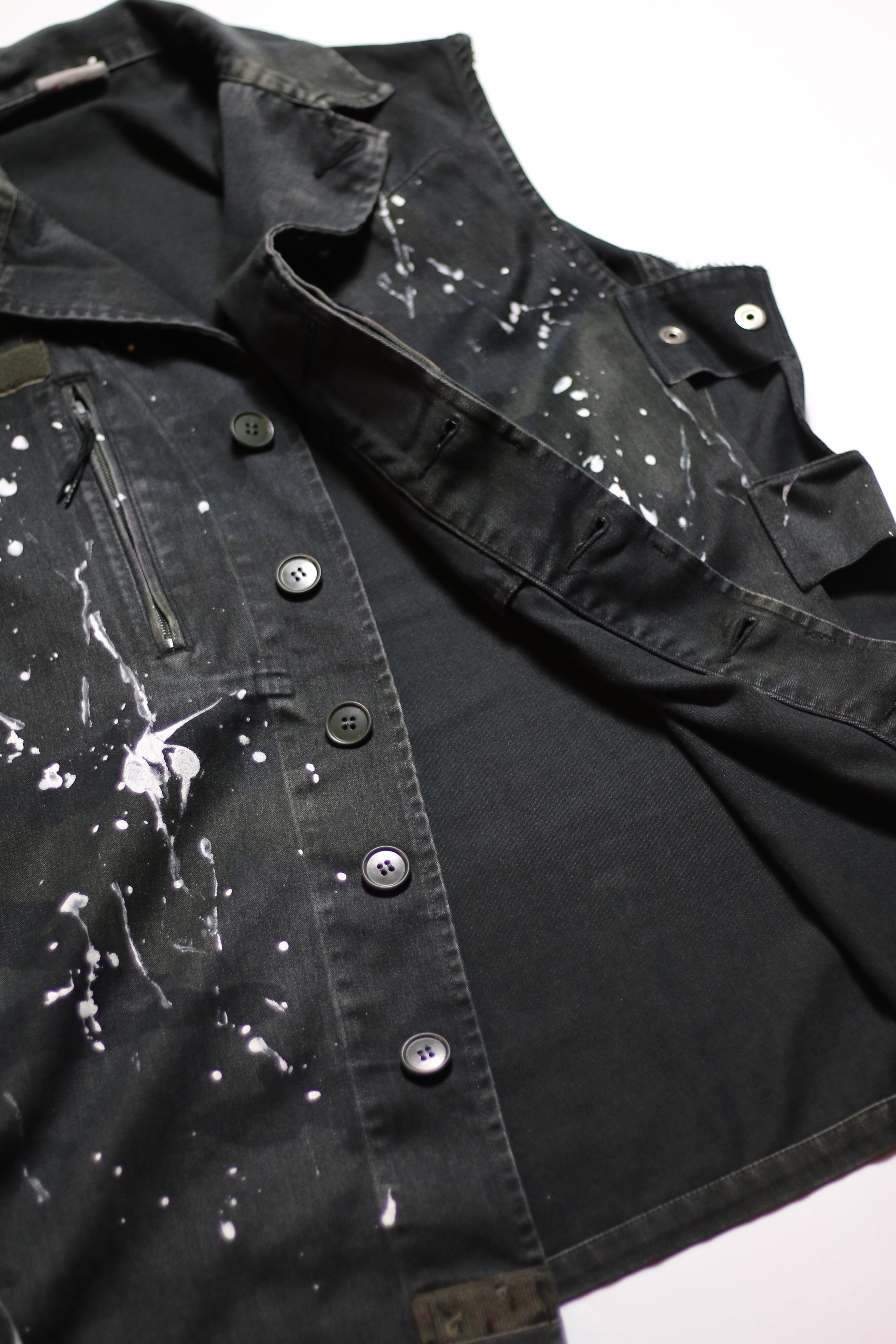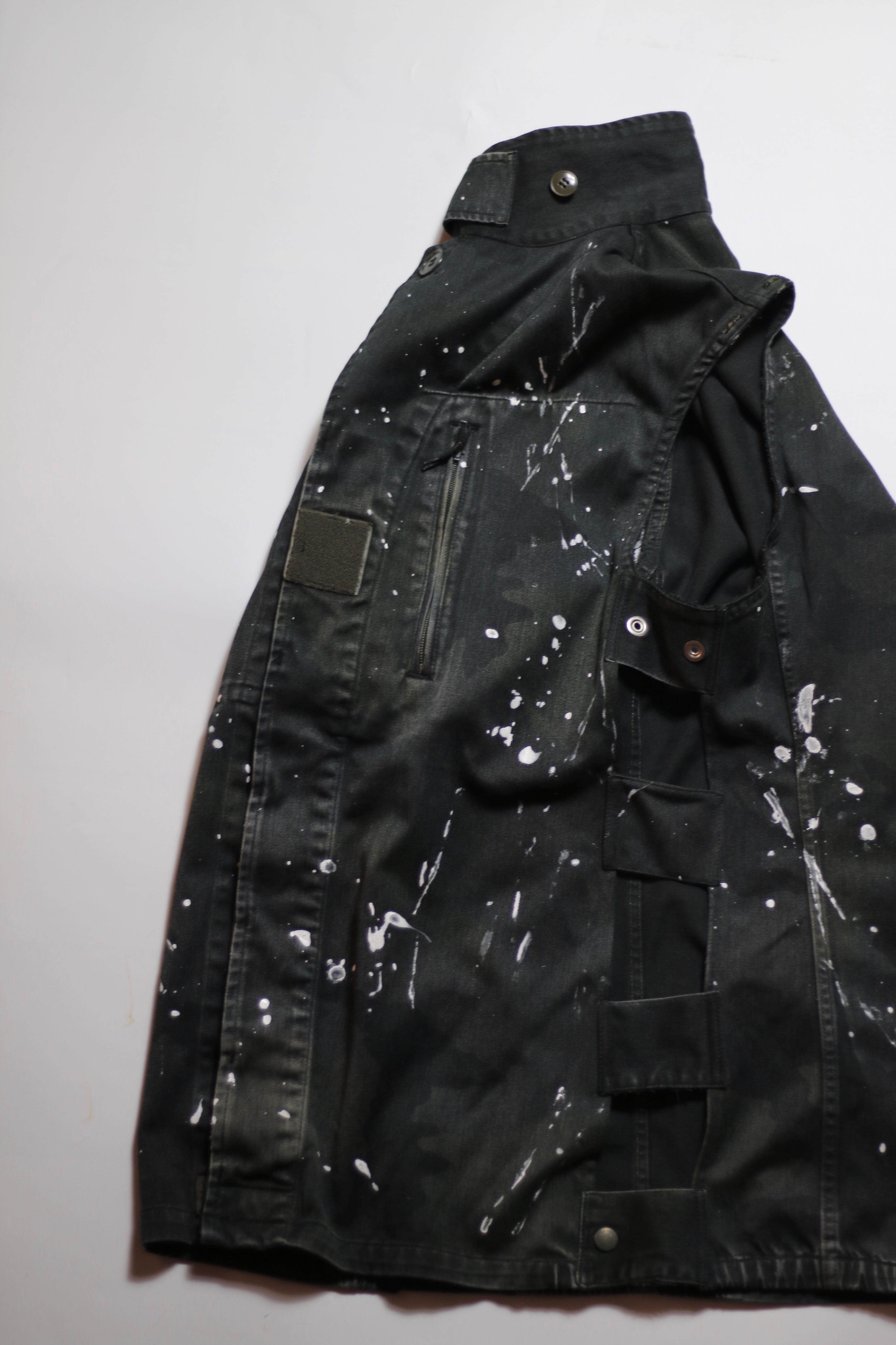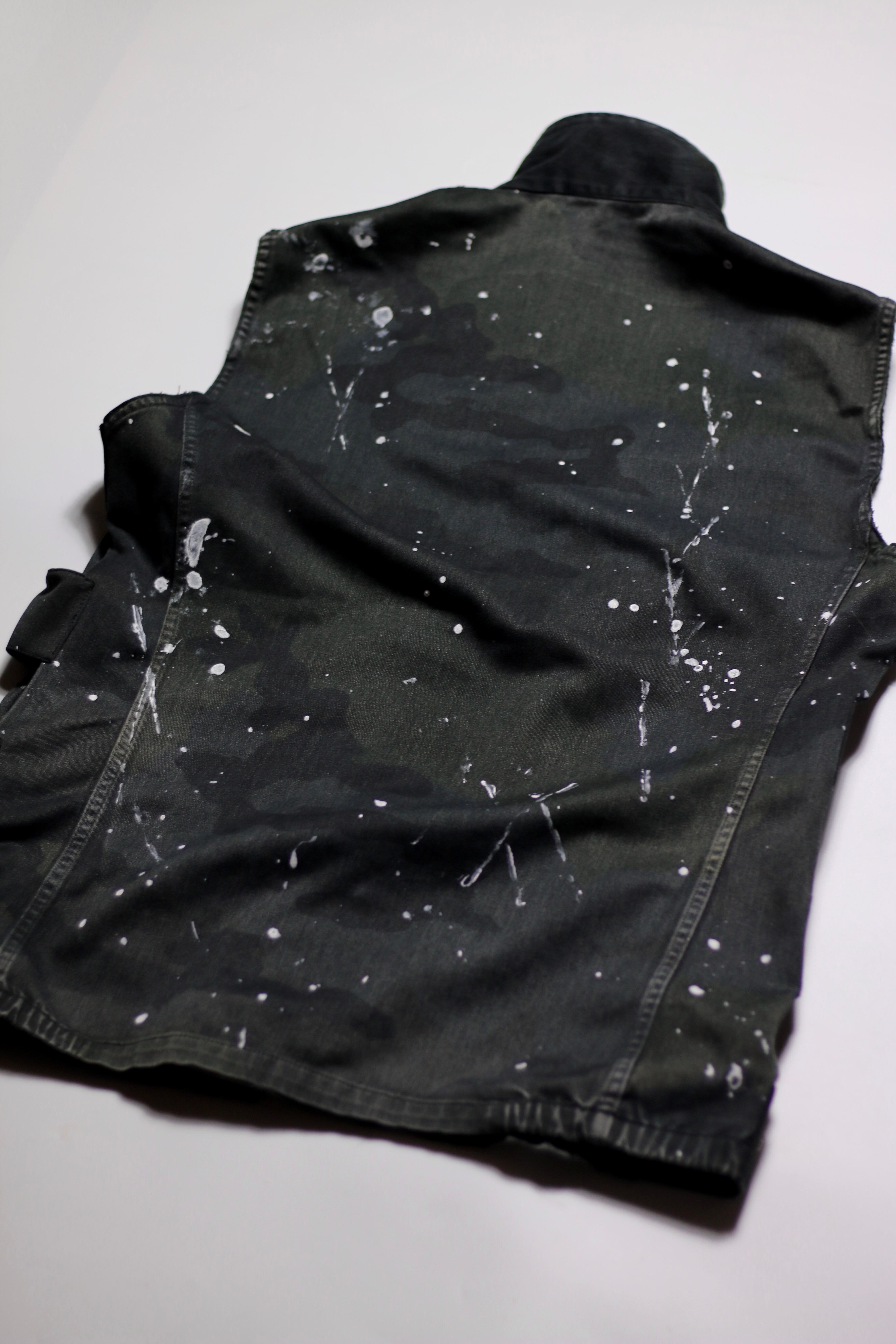 フランス軍 F2カモ柄コンバットジャケットに後染めブラックを施しベストに変更。