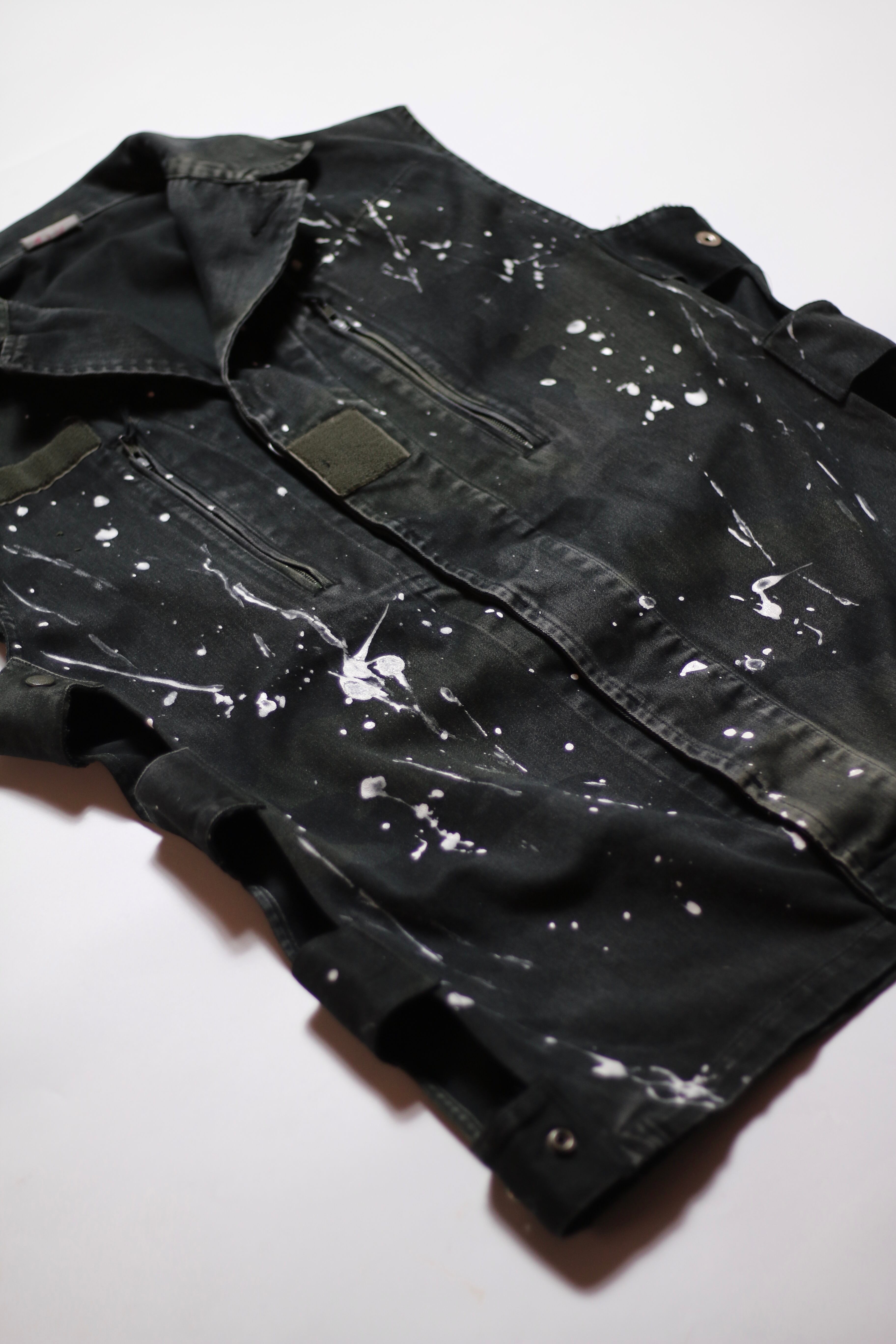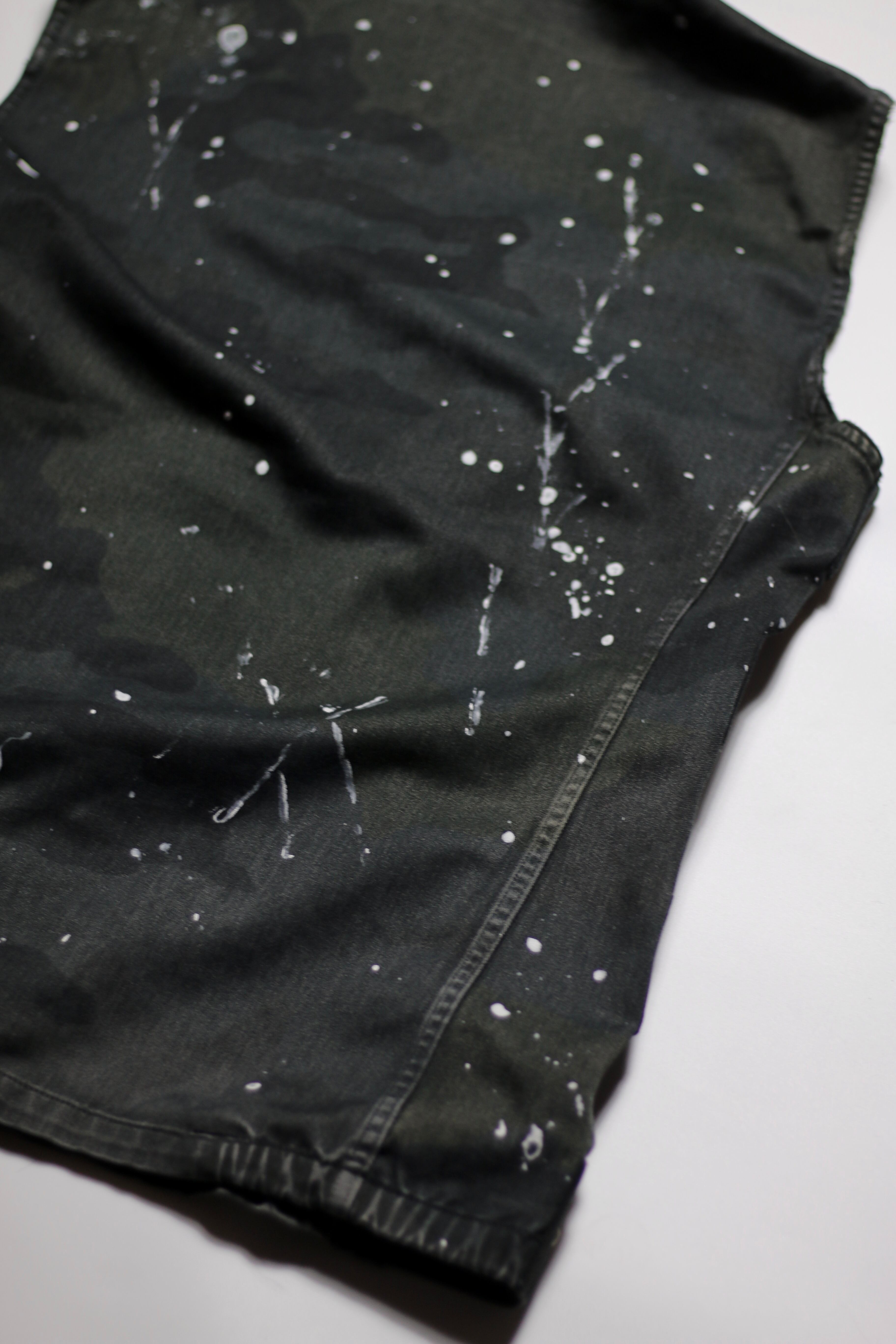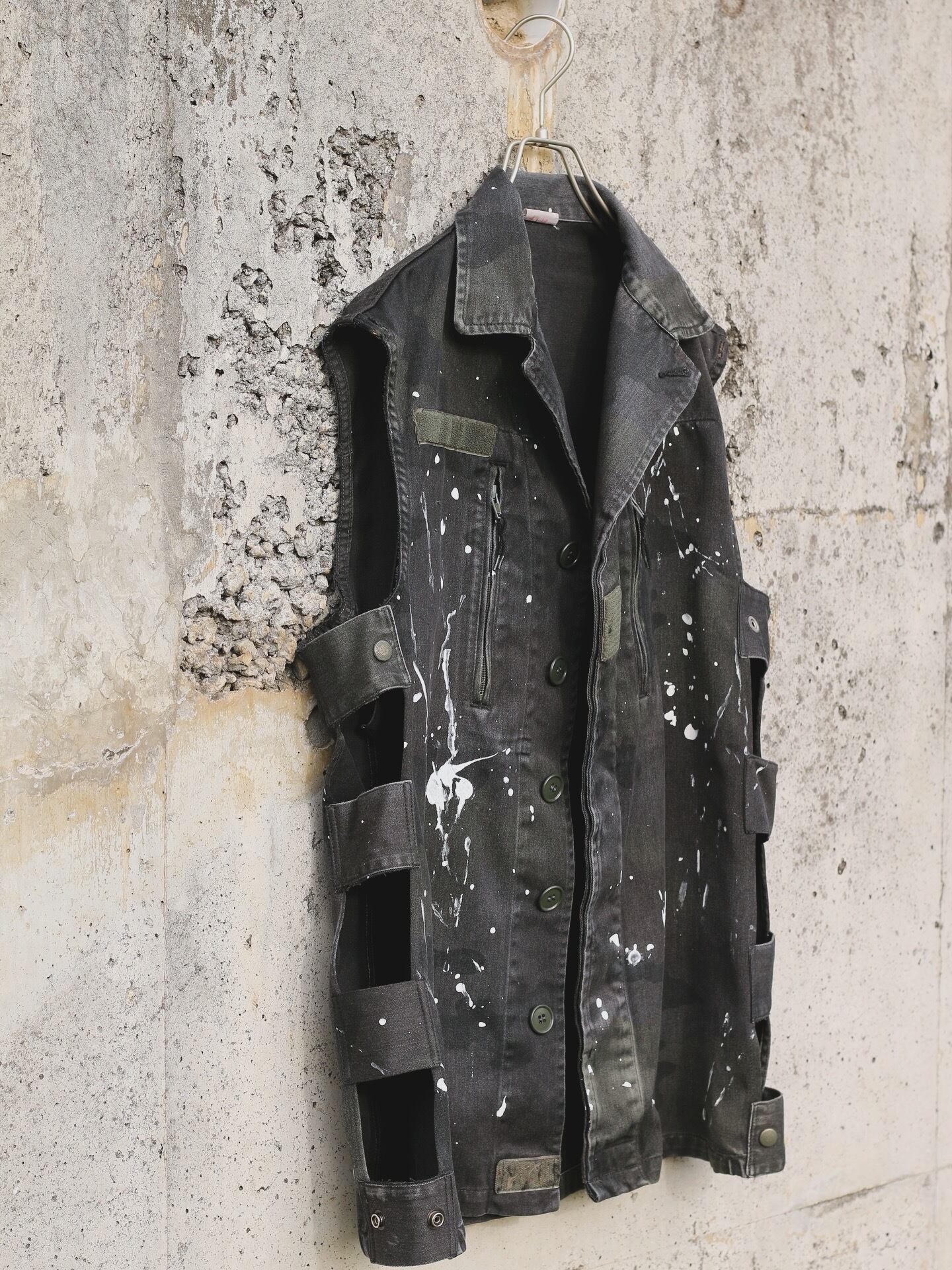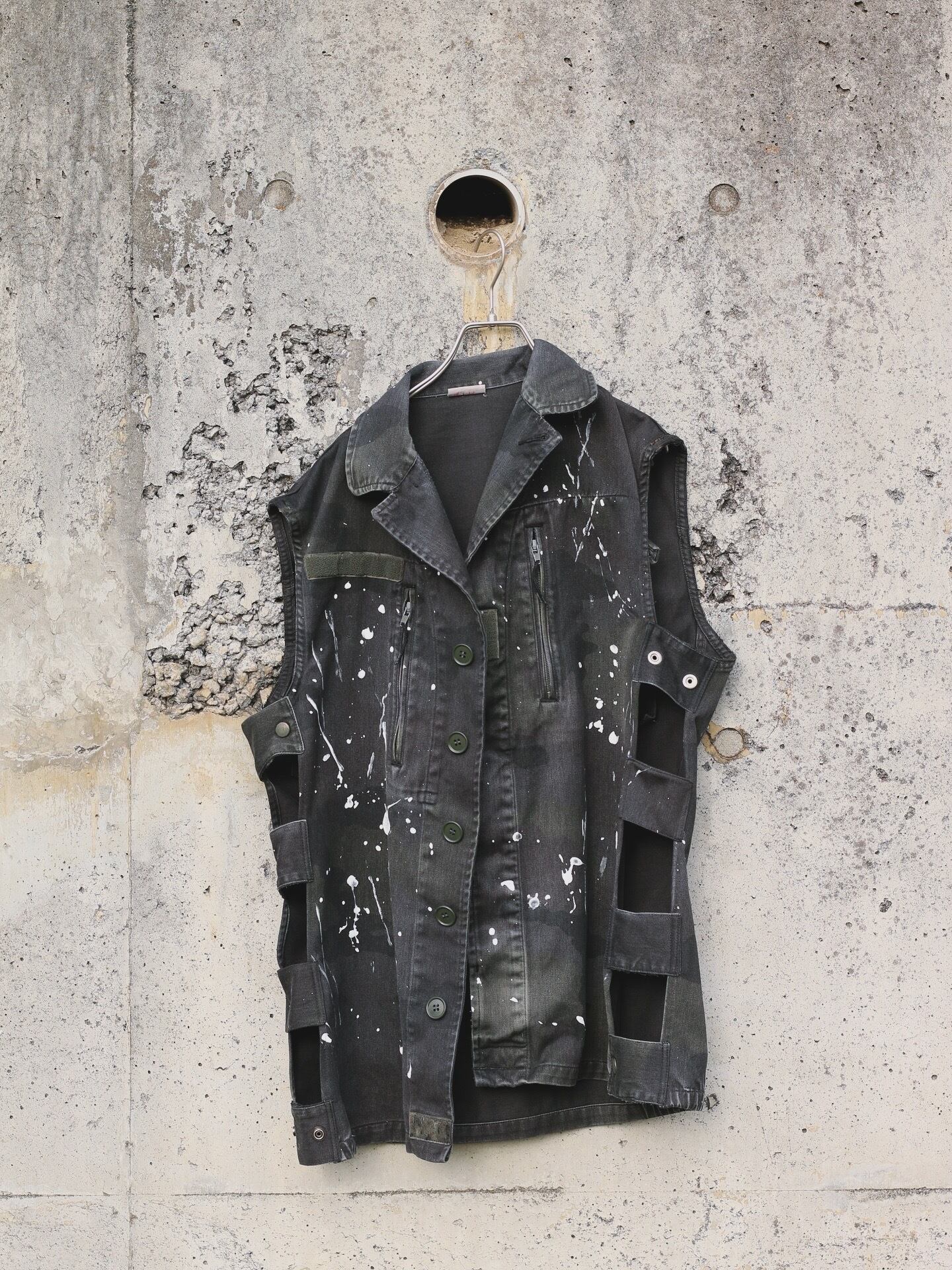 フランス軍 F2カモ柄コンバットジャケットに後染めブラックを施しベストに変更。