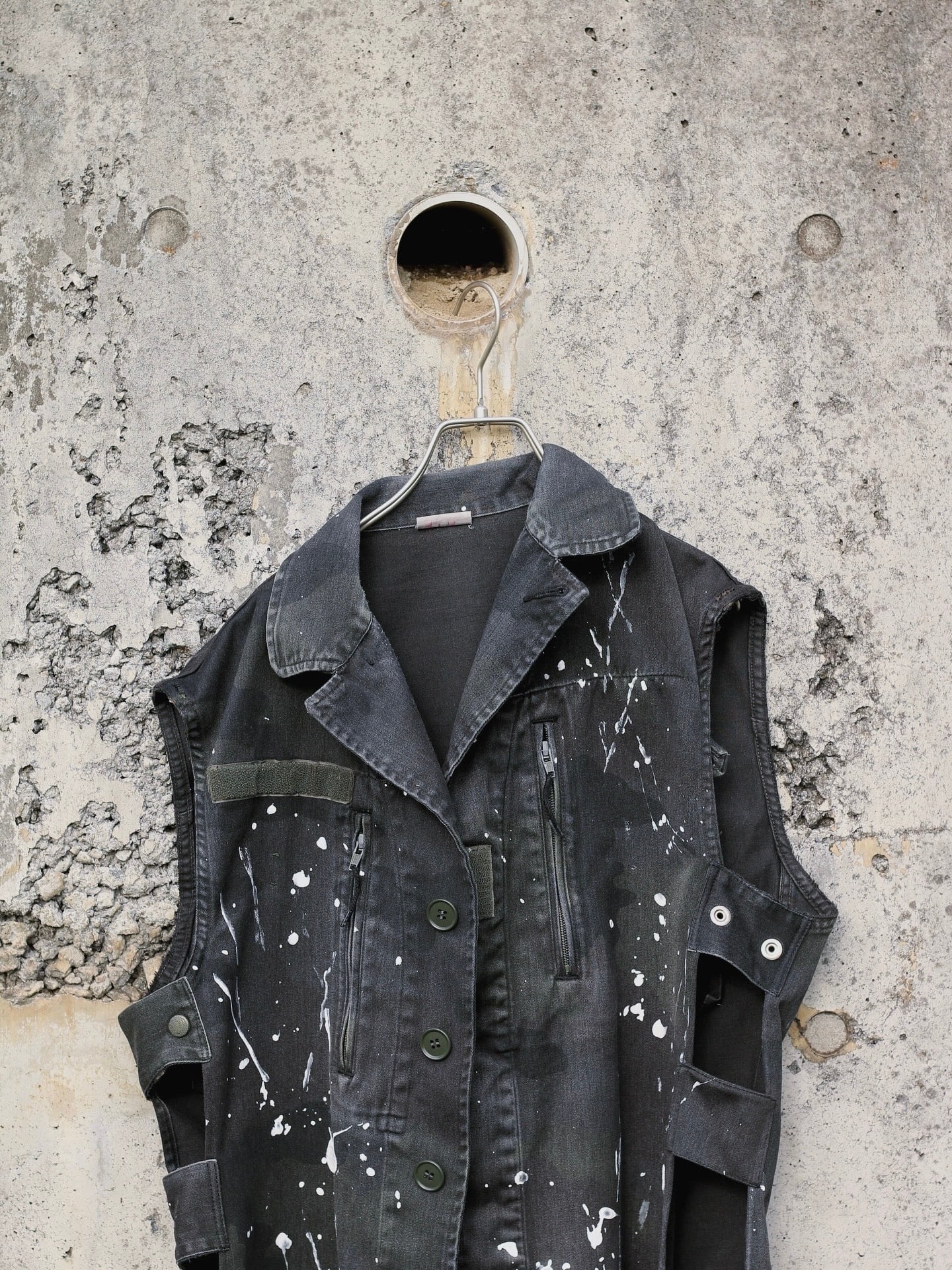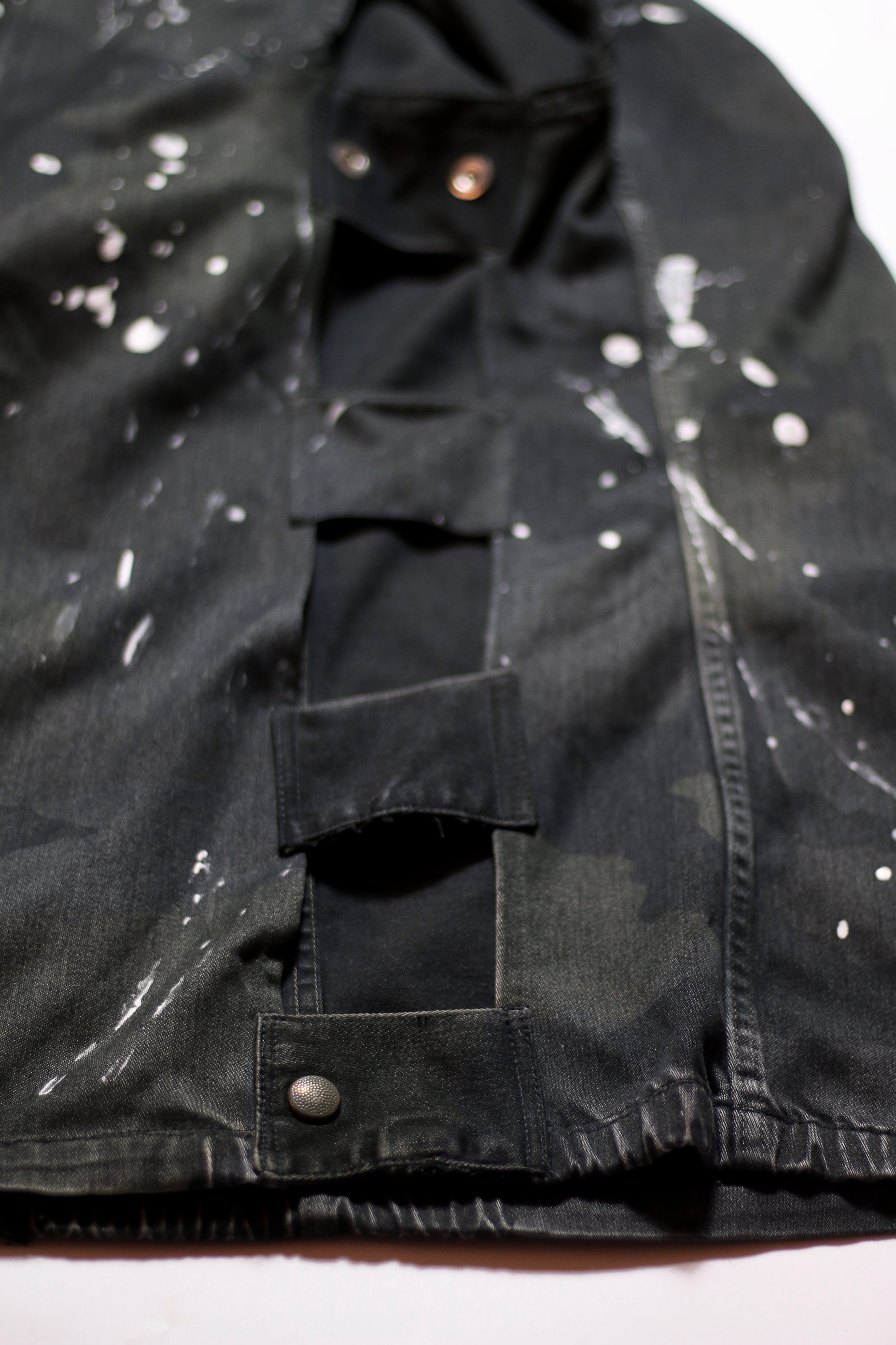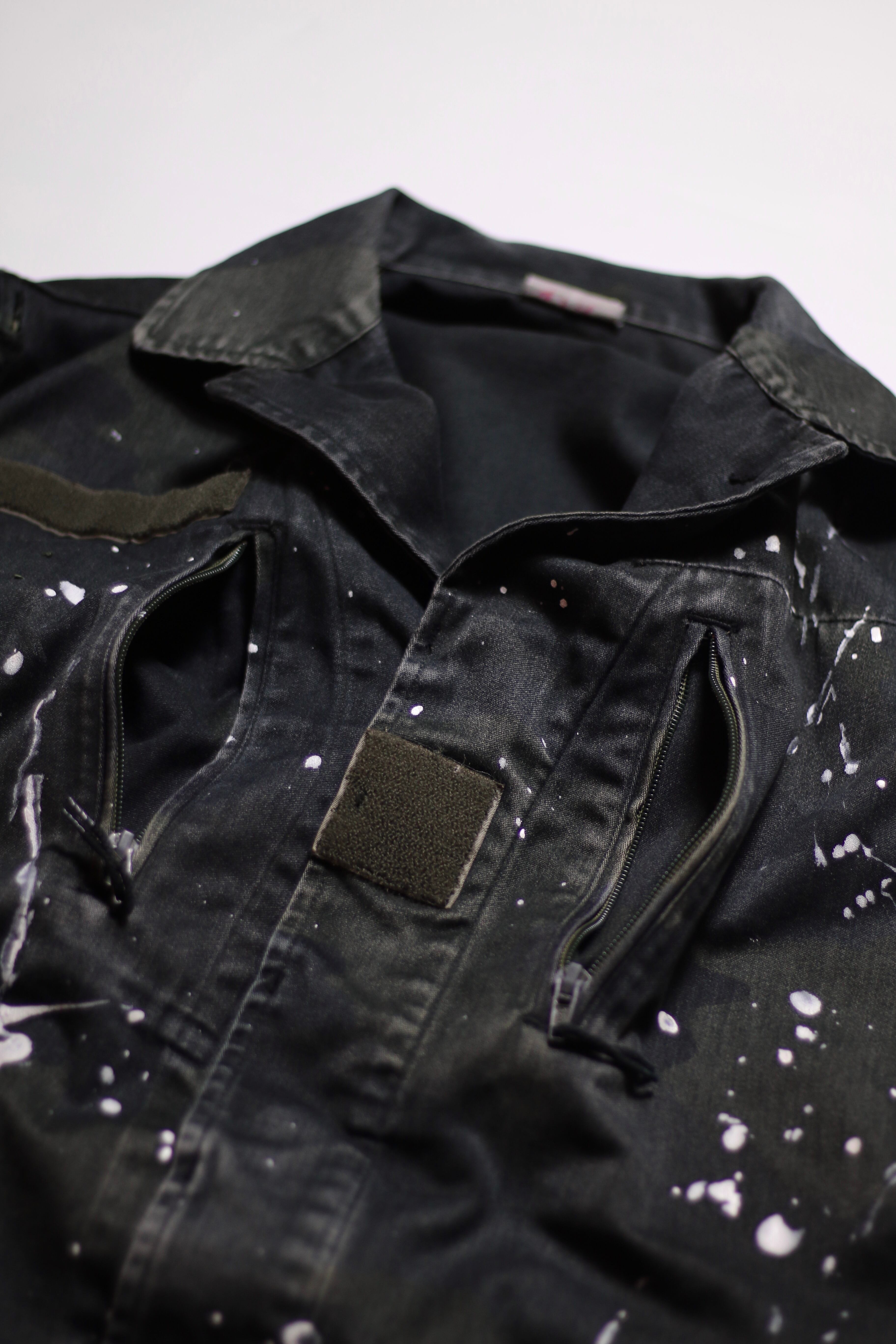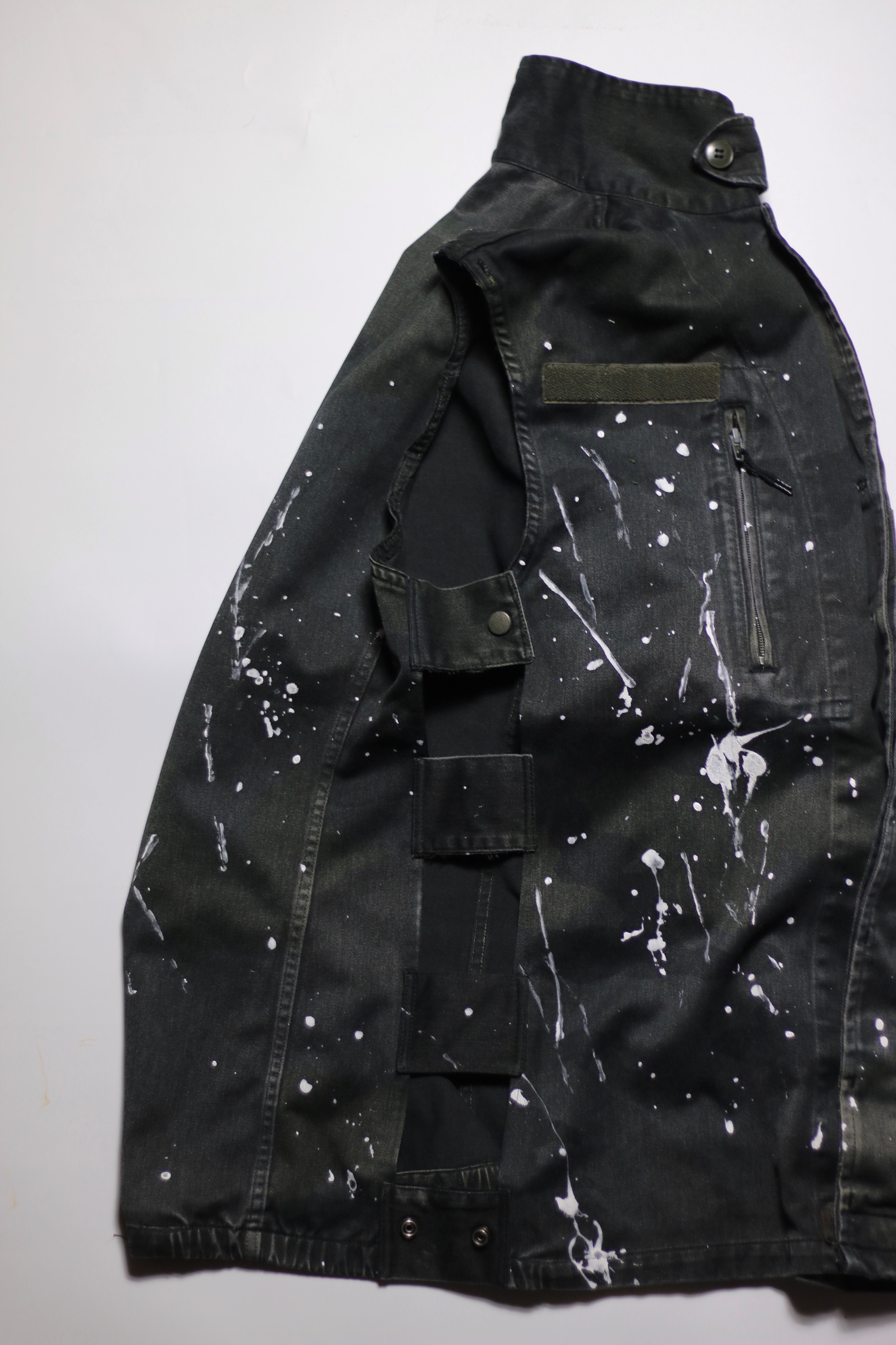 フランス軍 F2カモ柄コンバットジャケットに後染めブラックを施しベストに変更。